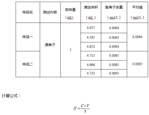 X---样品中溴离子含量,单位为摩尔每升(mol/L);
